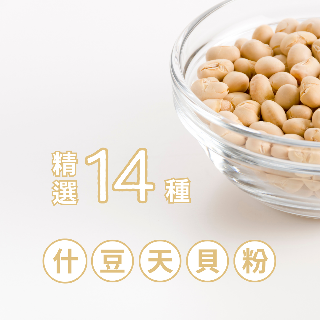 內容物:什豆天貝粉(加拿大非基改黃豆、黑豆、紅豆、綠豆、枸杞、鷹嘴豆、紅藜麥、黃扁豆、綠扁豆、米豆、蕎麥、紅薏仁、葵瓜子仁、南瓜子仁、天貝菌)、小麥、堅果粉(杏仁、南瓜籽、核桃、腰果)、綠香蕉、糙米、地瓜、椰子油、椰子花蜜、食用鹽。